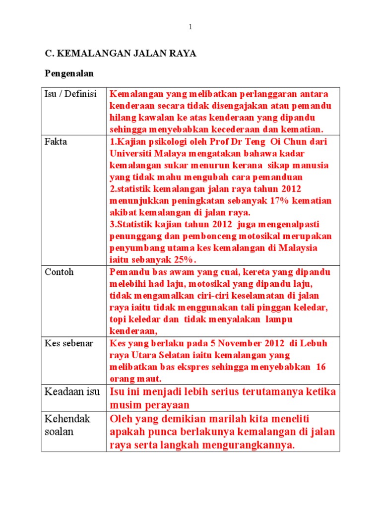 Bm karangan tentang keselamatan alan raya. Tengok jadual dibawah ini. Karangan Ulasan - Punca Kemalangan Jalan raya.